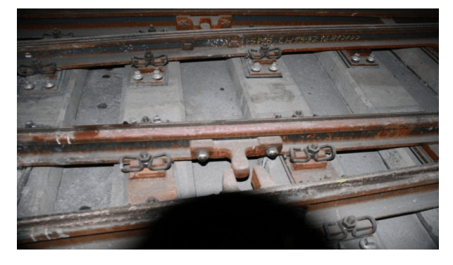 En la zona de desvío, esta va sobre traviesas mono bloque y del sistema de grapa se pasa a otro donde unas sujeciones hechas de fundición, con barras en cuña y tirafondos hacen la sujeción de todo el conjunto del aparato; Los corazones son realizados en un formato más grande que el carril y así el paso del tren por esta zona y los espadines será más suave y con más duración hacia el conjunto de la aguja.