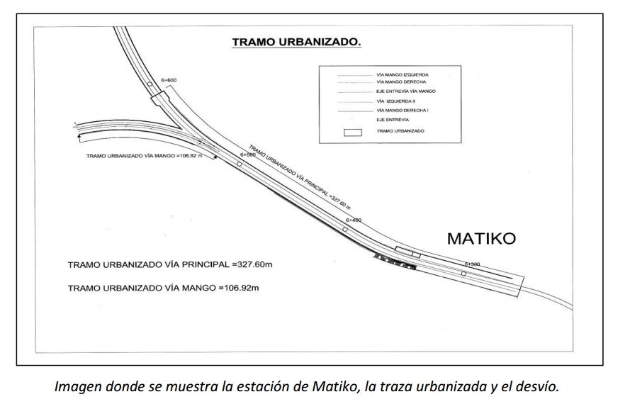 En cuanto a las pendientes, el desarrollo más pronunciado ha sido el de lado Deusto, ya que comienza con una pendiente de 7,5 milésimas en unos 25 metros para continuar con una pendiente de 39 milésimas hasta la punta del desvío; Del lado Uribarri, comienza con una pequeña bajada con una pendiente del 2,1024% en recta hasta el final del tramo donde enlaza con una curva de radio 148,29 metros y una pendiente de subida del 4,0155% hasta la estación de Uribarri; La distancia desde Uríbarri hasta Matiko, en puntas de andenes es de 350 metros.