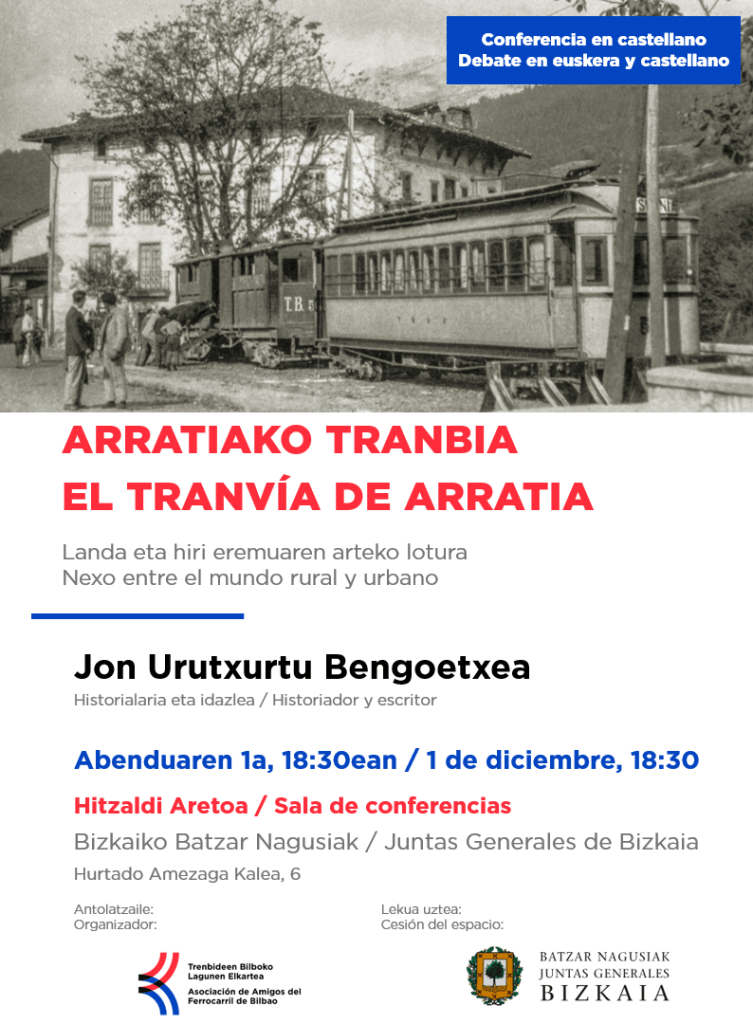 El próximo 1 de diciembre a las 18:30, Jon Urutxurtu Bengoetxea, historiador y escritor realizara una conferencia sobre el Tranvía de Arratia en la que hablará sobre la unión que genero aquel transporte a mediados de los años 60 entre el mundo rural y urbano .
