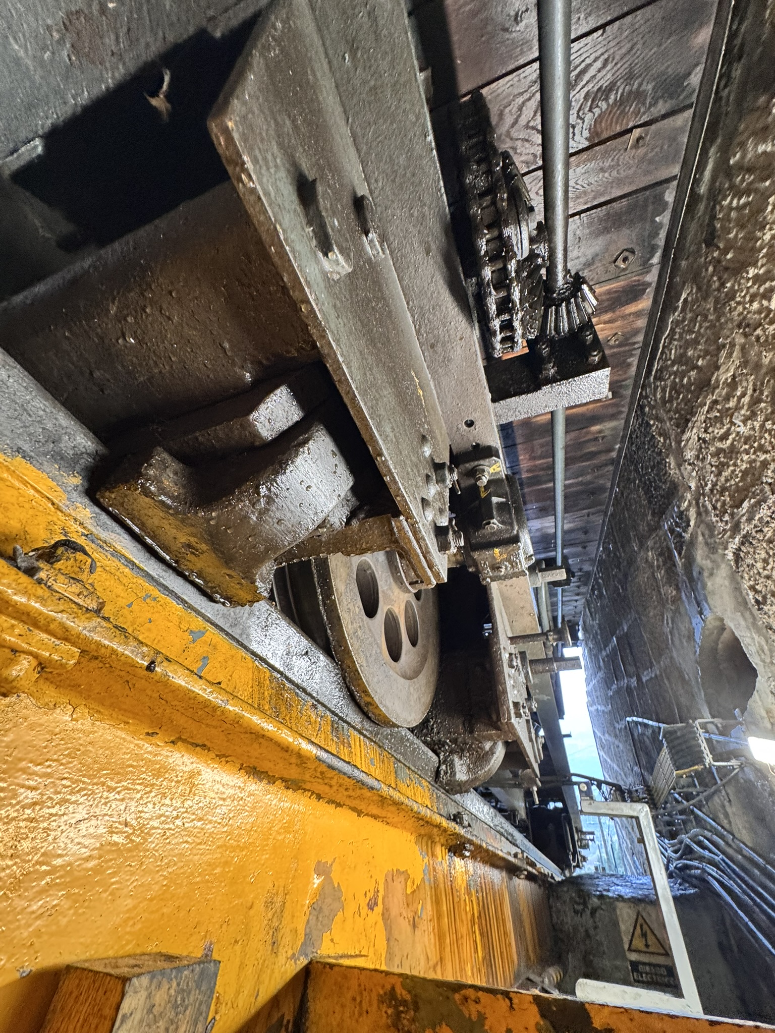 Una vez visitada la estación inferior, nos dirigimos a la estación de La Reineta para ver el interior de la zona de los motores, algunos de nuestros socios tuvieron la oportunidad de ver durante la explicación los bajos del funicular, un medio de transporte similar al ferrocarril, pero a la vez bastante diferente en algunos aspectos.