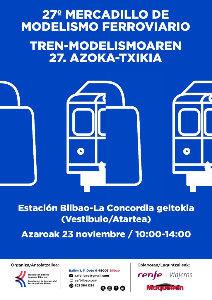 Al igual que otros años, la AAFB organiza un mercadillo de modelismo ferroviario en la Estación de La Concordia de Bilbao.