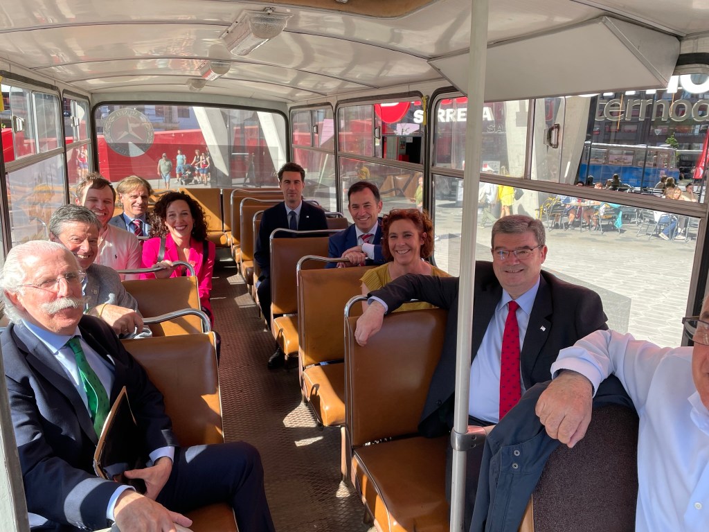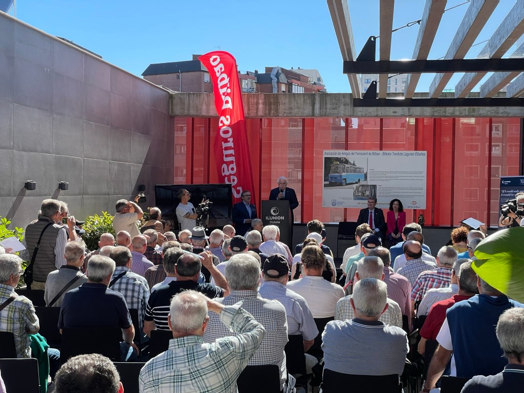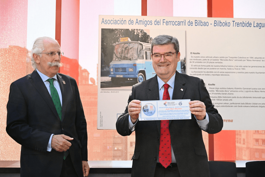 El llamamiento realizado por la AAFB, logro reunir a más de 100 antiguos conductores y conductoras, el jueves 4 de mayo de 2023 en Bilbao. El acto oficial, conducido por el reconocido periodista Jon Uriarte, comenzó a las 11:00h, contando con la presencia de la máxima autoridad cívica de la Villa de Bilbao, el alcalde Juan Mari Aburto, la Concejala de Movilidad y Sostenibilidad, Nora Abete, entre otros. Durante el transcurso del evento, los concejales asistentes al evento entregaron a cada uno del centenar conductores presentes, un singular “billete” personalizado de agradecimiento por los años dedicados a conducir el AZULITO. Todo el evento no hubiese sido posible sin el patrocinio de BILBOBUS y SEGUROS BILBAO.
