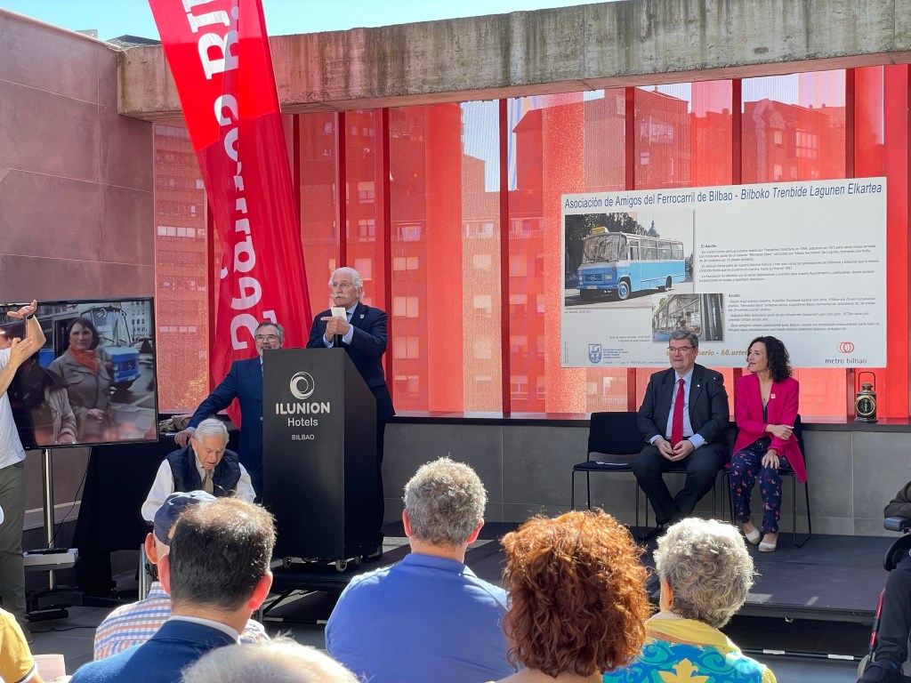 El Encuentro de Antiguos Conductores del Azulito fue promovido por la Asociación de Amigos del Ferrocarril de Bilbao, para conmemorar el 60 ANIVERSARIO de la entrada en servicio de esta especie de «taxi colectivo bilbaíno», que en apenas veintiséis años de circulación, entre 1963 y 1989, consiguió entrar a formar parte de nuestro patrimonio cultural y convertirse en un icono de Bilbao.