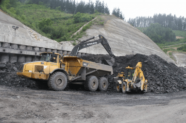 Construcción del muro de sostenimiento. Al final, se aprecia el túnel artificial construido. Fotografias de Juan Manuel Estradé.